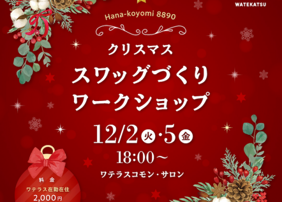 【ワテカツ】Hana-koyomi クリスマス スワッグづくり ワークショップ