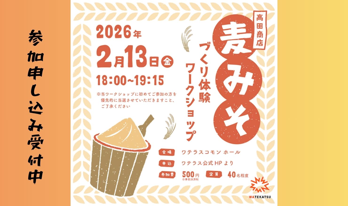 【ワテカツ】 2/13 高田商店・麦みそづくり 体験ワークショップ