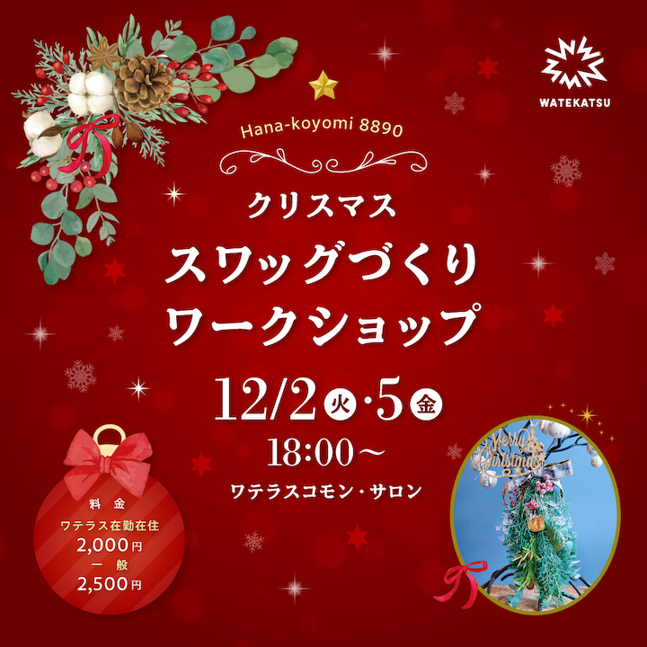 【ワテカツ】Hana-koyomi クリスマス スワッグづくり ワークショップ