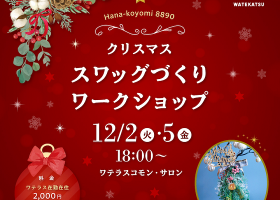 【ワテカツ】Hana-koyomi クリスマス スワッグづくり ワークショップ